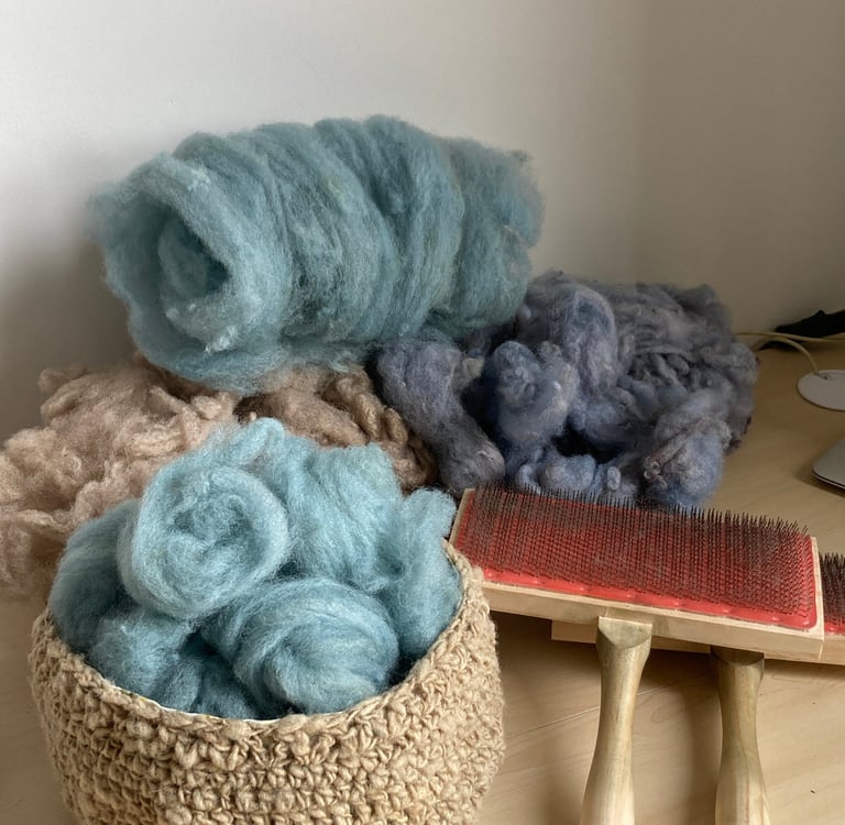 Plongez dans l'univers de mon métier, où je valorise la laine des Ardennes à travers le tri, le cardage, le filage et des teintures végétales.